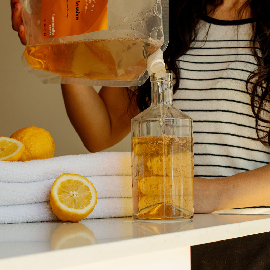 au cœur de la formule : notre savon noir québécois à l’huile de caméline, que nous fabriquons. cette base lavante puissante agit en profondeur pour décoller les saletés, dissoudre les graisses et préserver l’éclat des textiles, lavage après lavage.